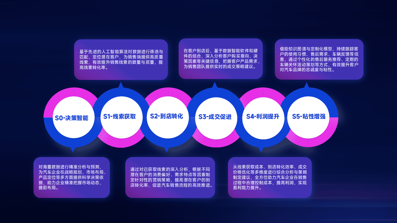 通过拓宽潜在客户来源、、、、优化线索分配并提高到店转化率,,以增强销售效率。。。。同时,,,,利用线索数据不断优化分析模型,,,有效提升转化率,,扩大营销影响力。。。